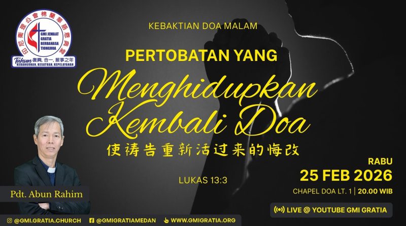 Read more📅 日期:2026年2月18日 (三)⏰ 時間:晚上八點正🤵講員: 林義雄 會督📍 地點:禱告室🙏 Ibadah Doa Malam📅 Tgl : Rabu 18 Januari 2026⏰ Pukul : 20.00 WIB🤵