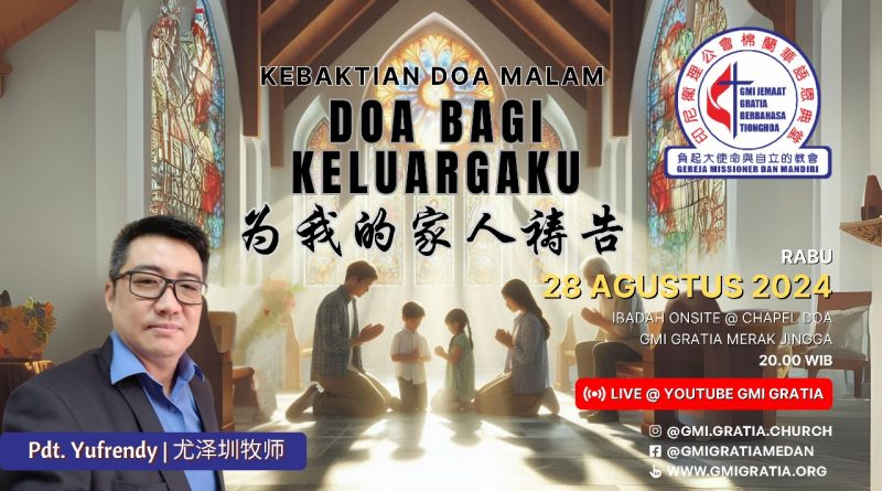 期:2024年11月13日(三)時間:晚上八點正講員:尤澤圳 牧師地點:禱告室 Ibadah Doa MalamTgl : 13 November 2024Pukul : 20.00 WIBPemb. : Pdt.YufrendyTempat : Chapel Doa