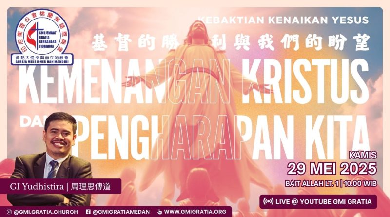 耶穌升天崇拜日期:2025年5月28日(四)時間:早上10.00講員:周里思 傳道 Kebaktian Kenaikan YesusTgl : Kamis, 29 Mei 2025Pukul : 10.00 WIBPengkhotbah : GI.Yudisthira