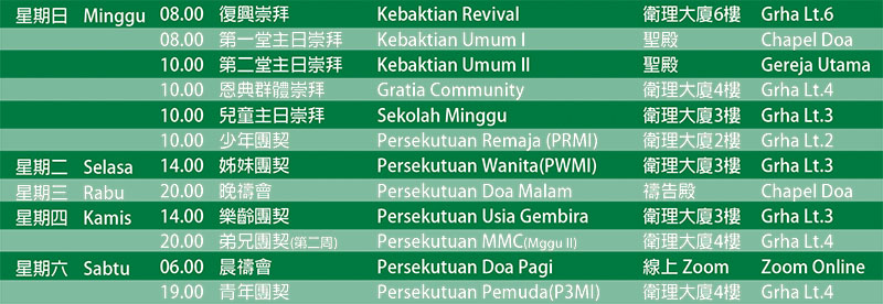 聚會表 Jadwal Ibadah
